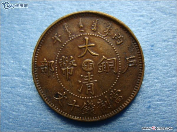 大清铜币中湘云腿龙十文,美品。