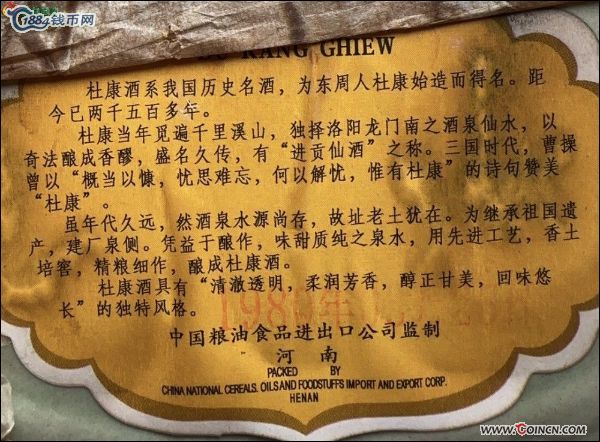 80年河南洛阳出口创汇瓷瓶52度杜康名酒.至今已45年