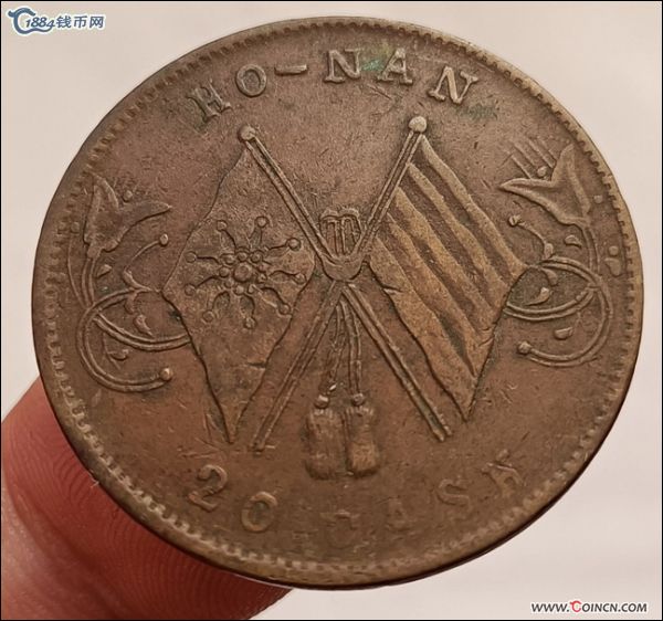 H21023民国河南省造双旗铜币当制钱二十文