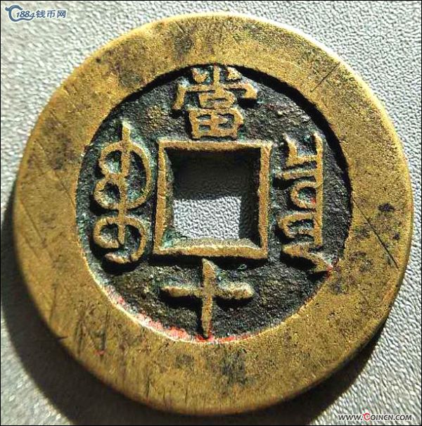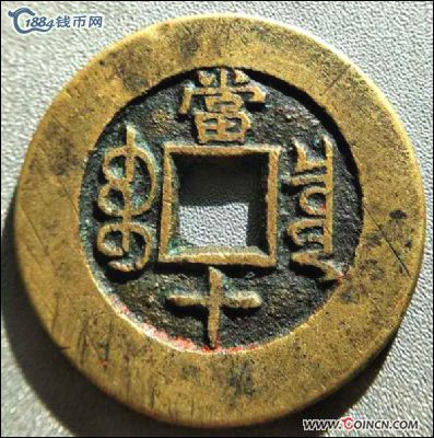 极美---光绪当十少见版别 满文出头宝
