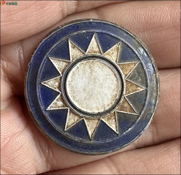 国民党军统党徽白铜法兰彩胸章