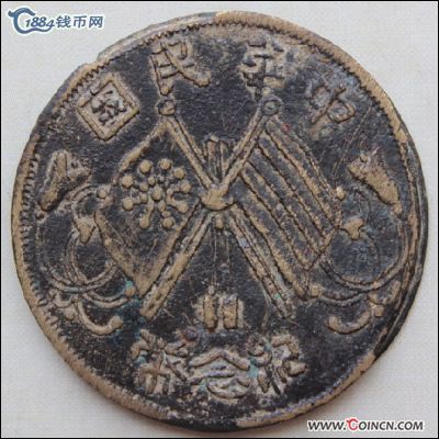 甘肃砂版五十文--中华民国纪念币缠枝花