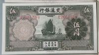 全新交通银行民国24年轮船5元2连号