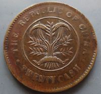 湖南当二十铜元乱星旗,三叶脉嘉禾(黄铜)