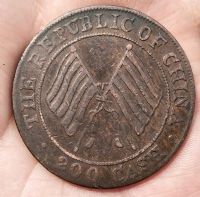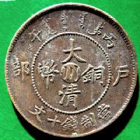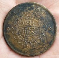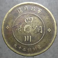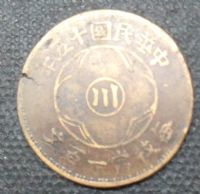 四川军政府铜币元年五十文船形花?