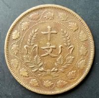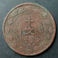 新疆喀造铜币十文反写文