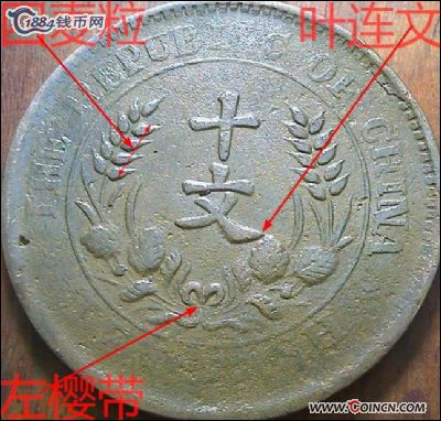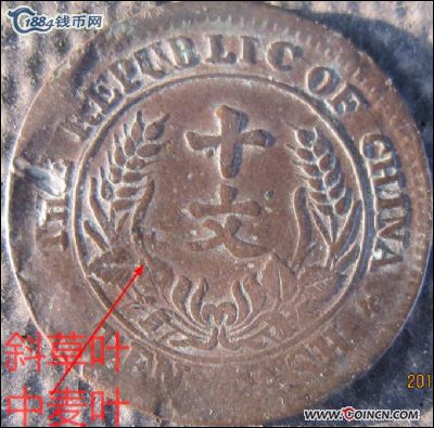 甘肃机制十文,每日一币,双梗系C【1】74珠侧叶左低右高..
